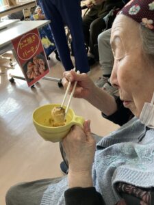 当日は、利用者さんと特定技能職員さんが協力しながら、たこ焼きをくるくると焼き上げました。最初は少し難しそうでしたが、次第に上手に丸いたこ焼きが出来上がり笑顔が溢れる時間になりました。焼きたてのあつあつたこ焼きをみんなで美味しくいただき、日本の食文化を一緒に楽しむことができました。