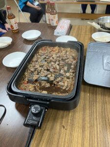 その喜びをみんなでお祝いする為、Sさんのお誕生日に合わせてジンギスカンパ-ティを開催しました。「おいしい!」と笑顔を見せる姿に職員一同胸が熱くなり、温かい笑顔とおいしい香りで包まれました。